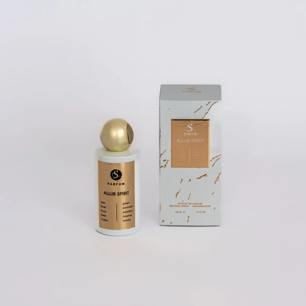 Allur Spirit S-Parfum Gold Collection is inspired by the iconic freshness of Chanel Allure Homme Sport, one of the most recognizable luxury sport fragrances in the world. Chanel Allure Homme Sport typically retails around $125–$150 for 100ml, known for its crisp citrus, aquatic freshness, and smooth woody base.