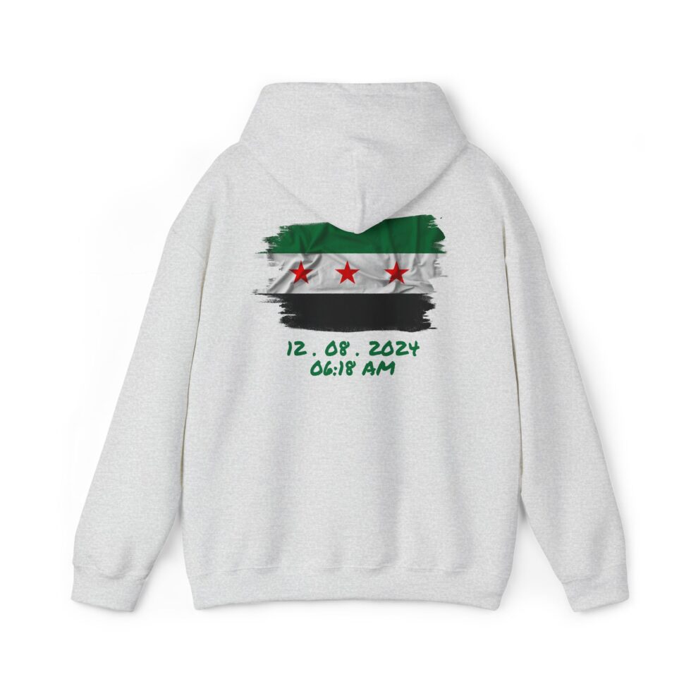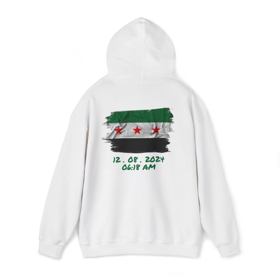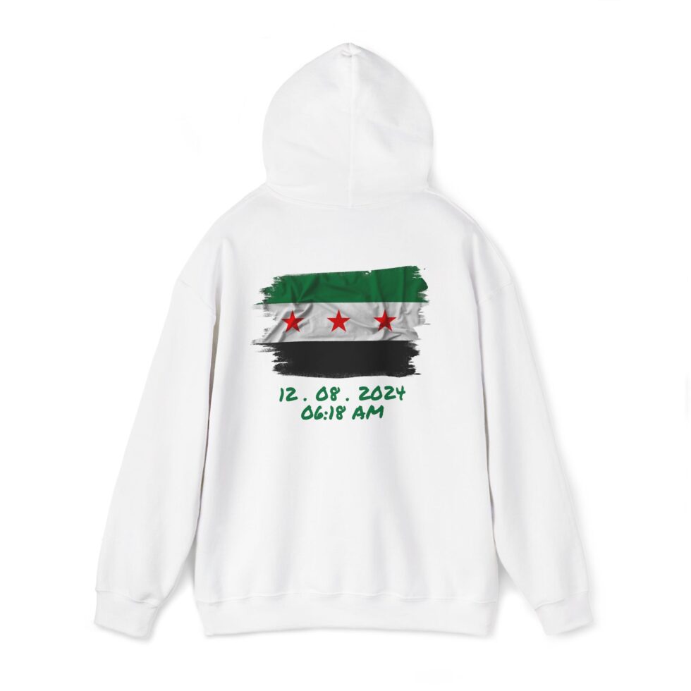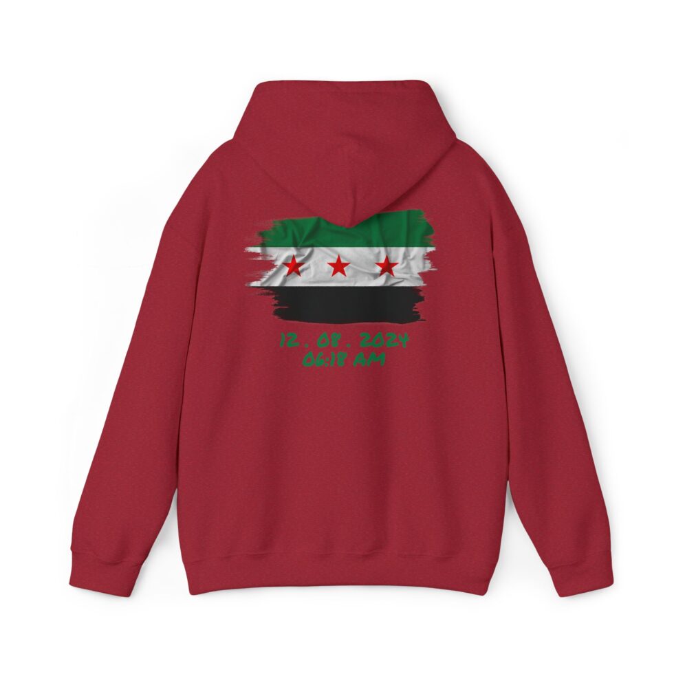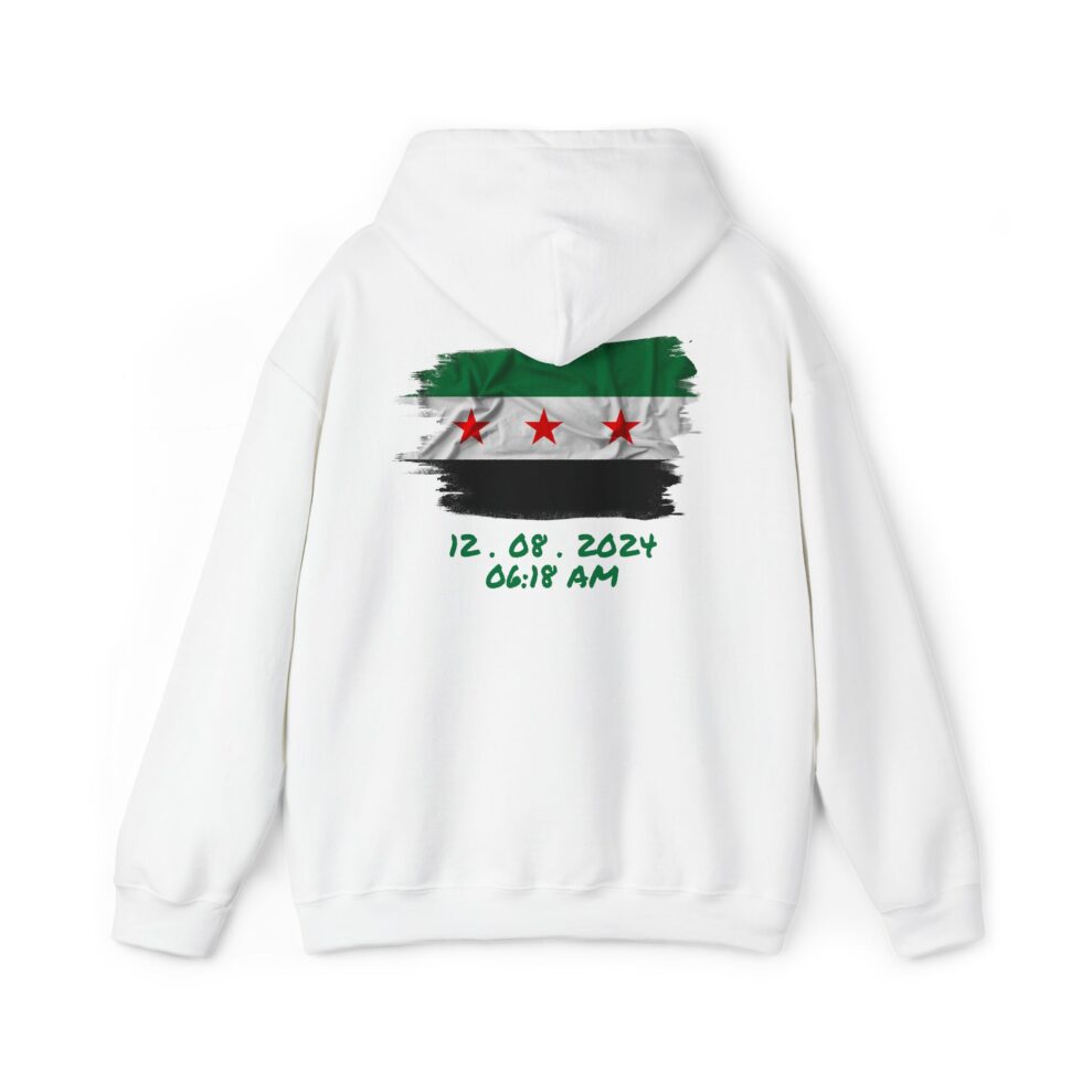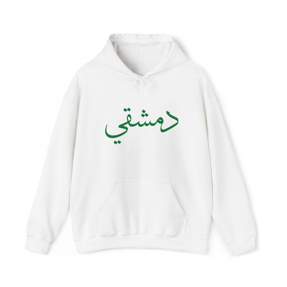 This free Syria themed hoodie features a damascene man written in Arabic, making a bold statement. The spacious pockets and adjustable drawstring hood provide practicality and comfort. Perfect for adults looking to show their support for Syria or make a fashion statement with a message.