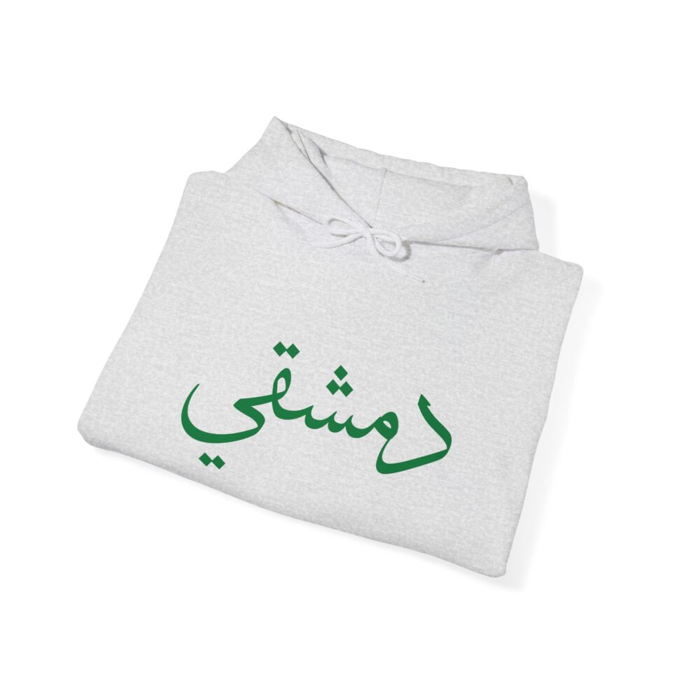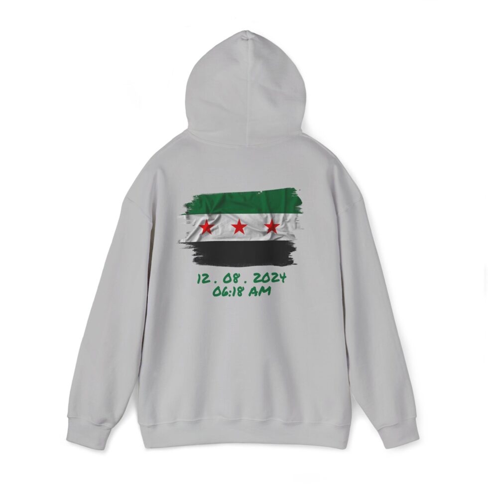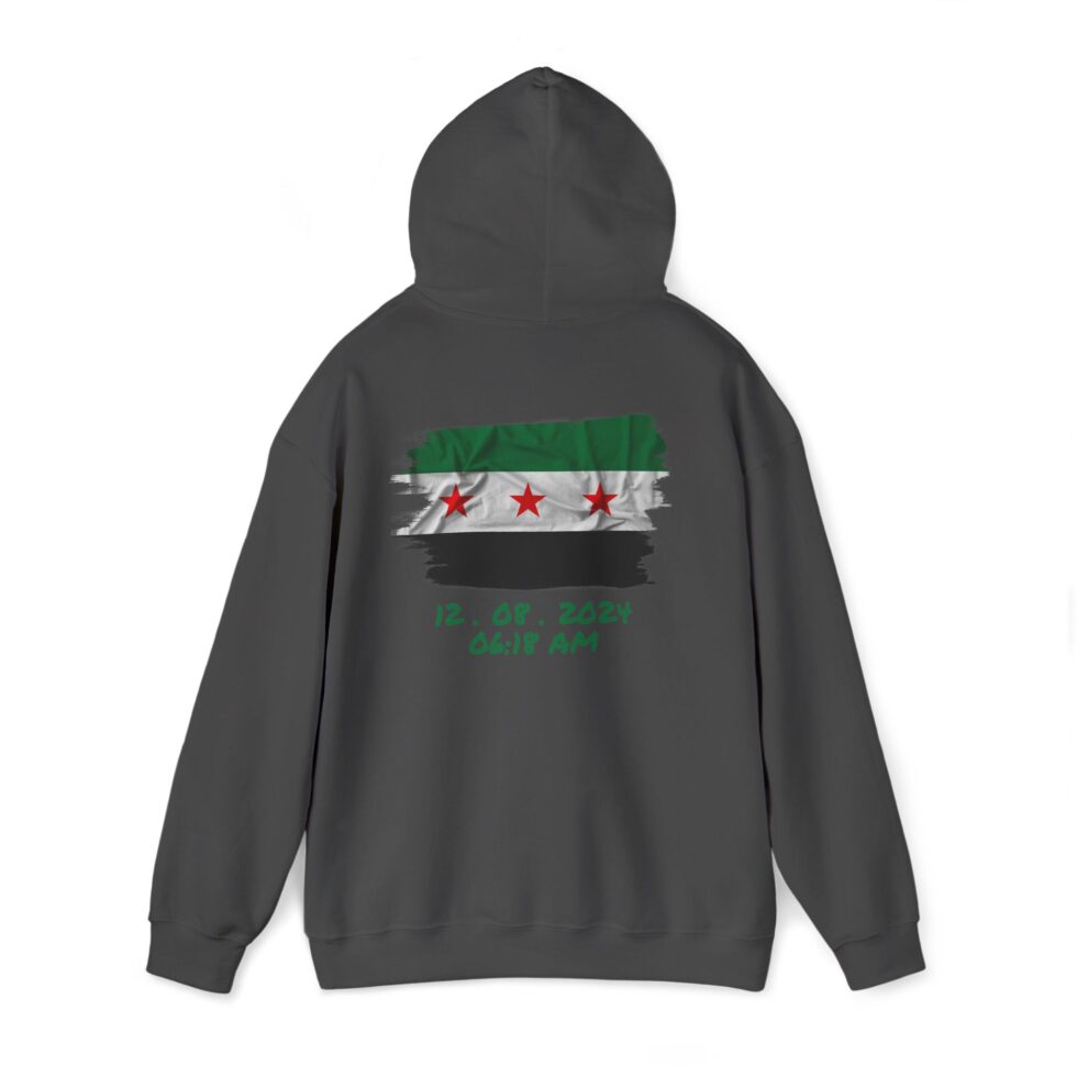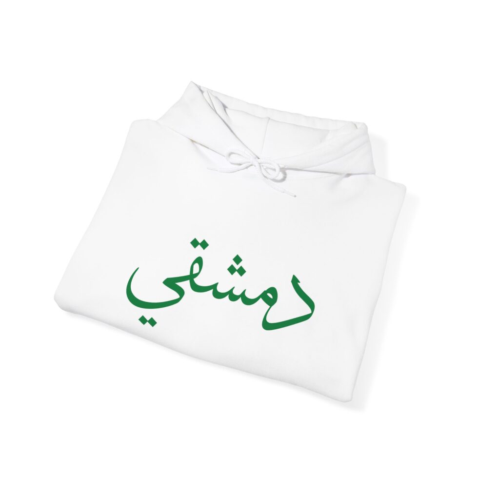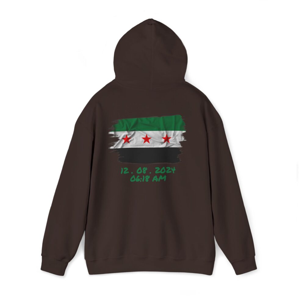 This free Syria themed hoodie features a damascene man written in Arabic, making a bold statement. The spacious pockets and adjustable drawstring hood provide practicality and comfort. Perfect for adults looking to show their support for Syria or make a fashion statement with a message.