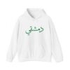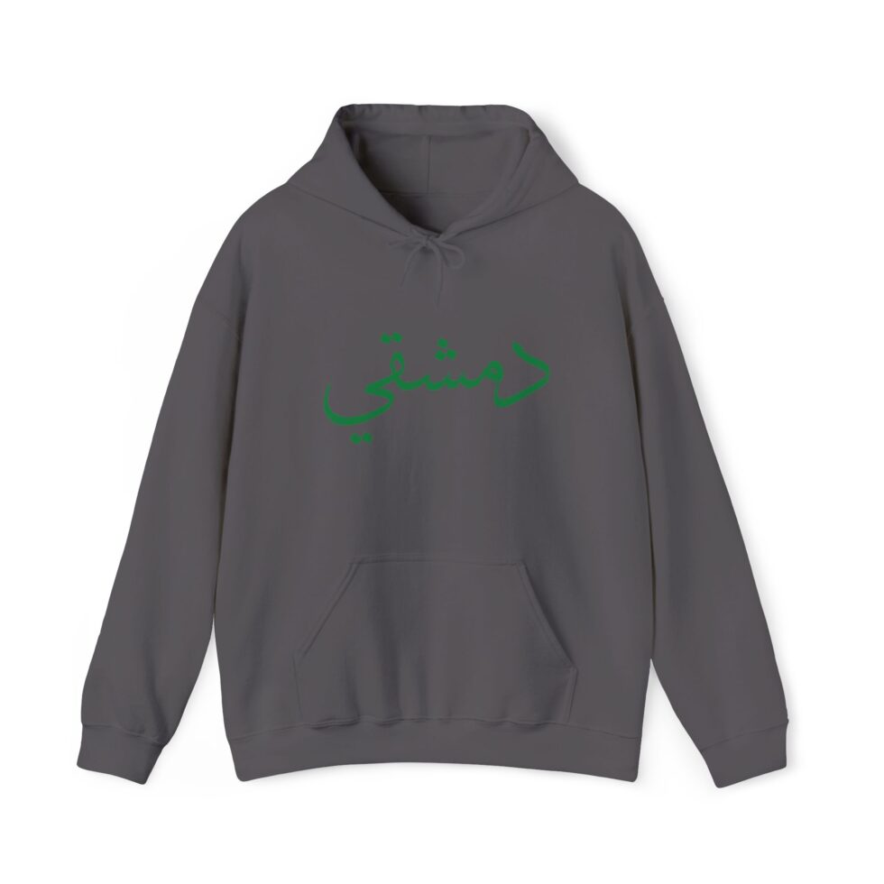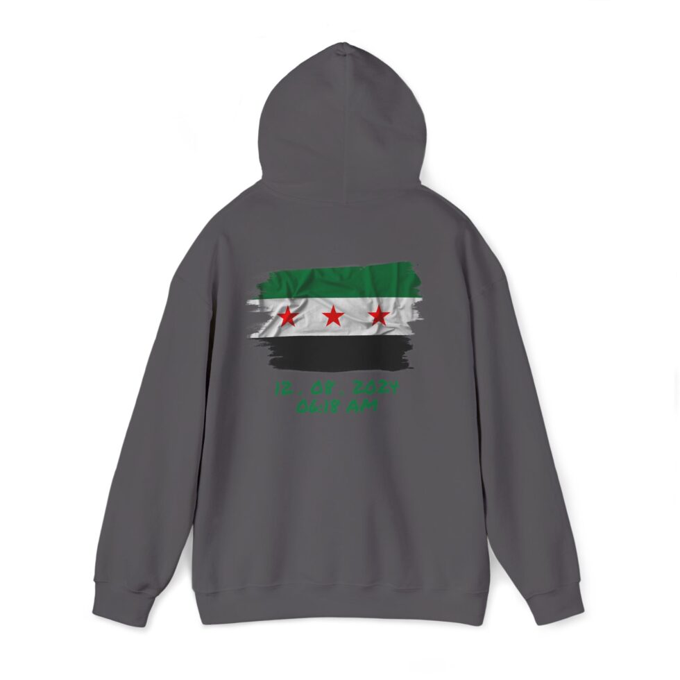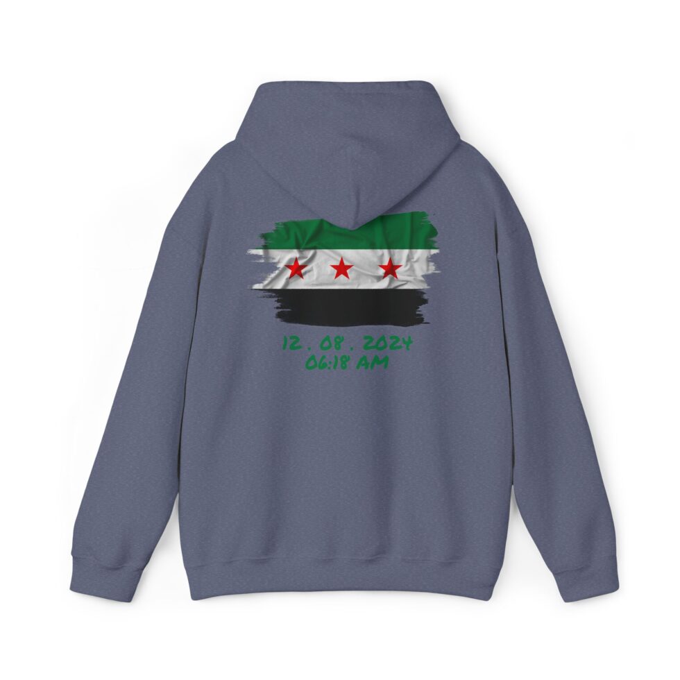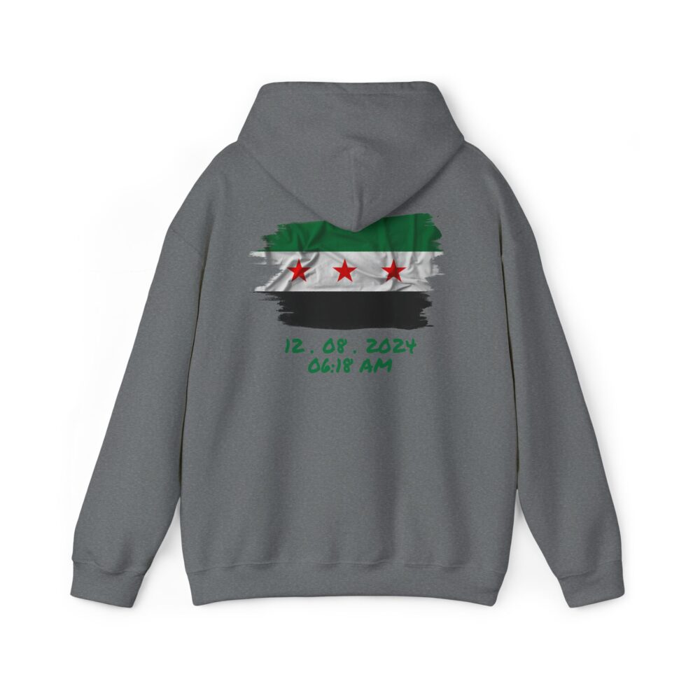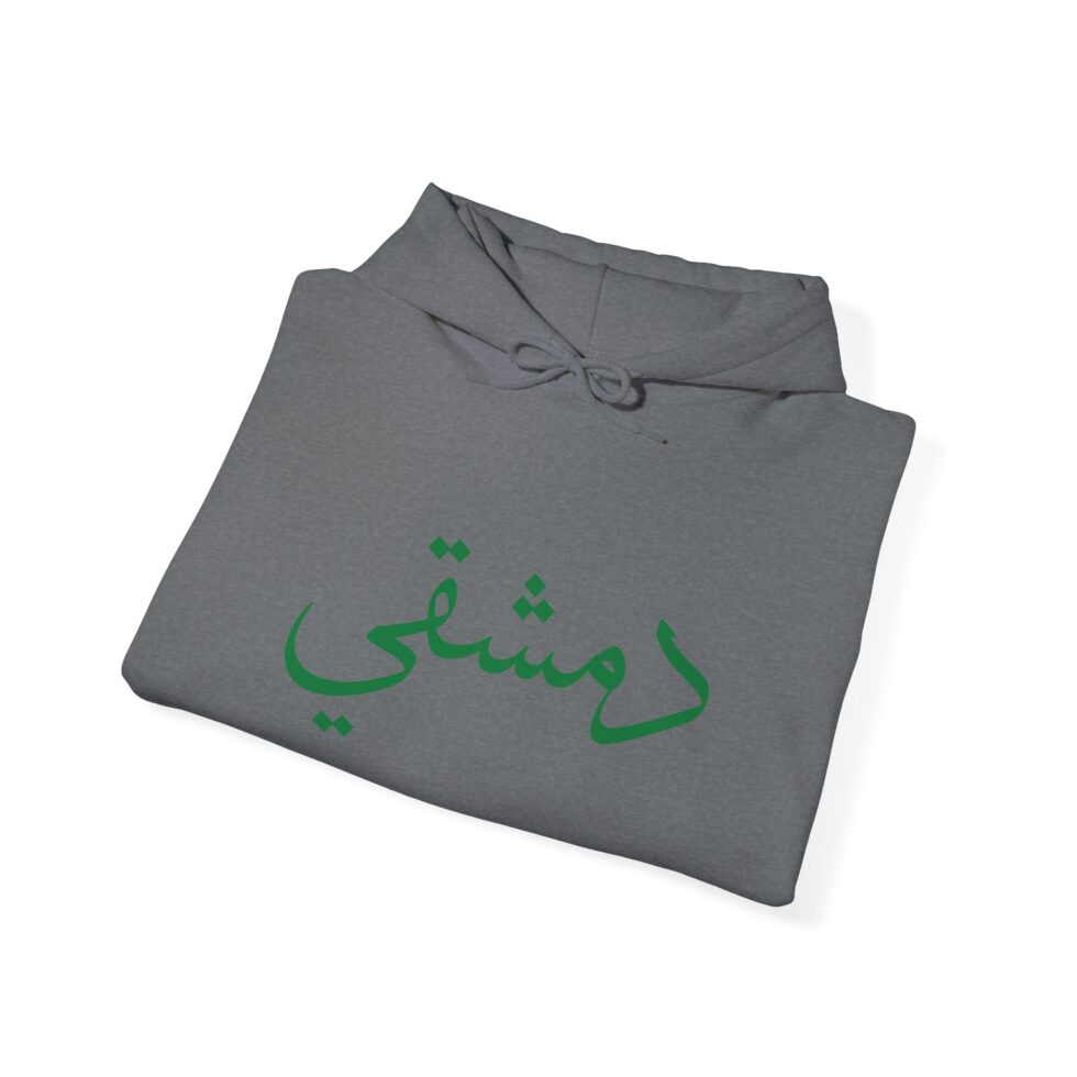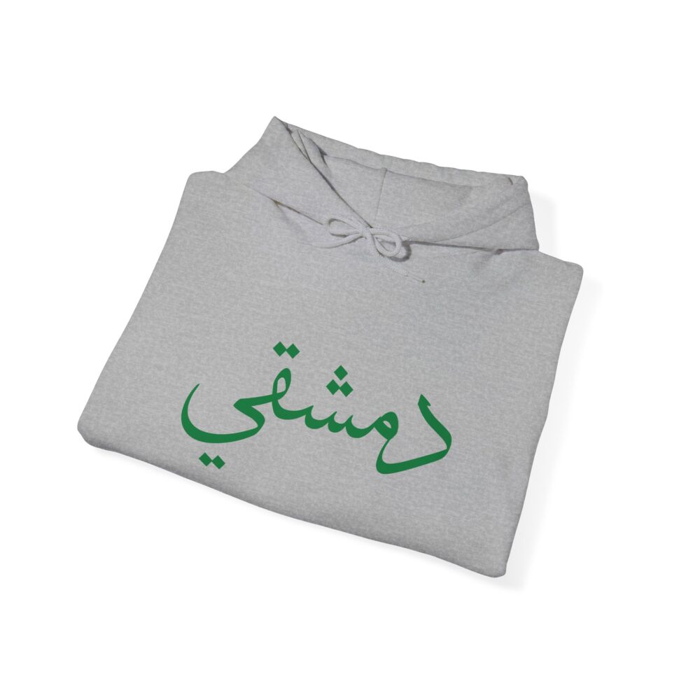 This free Syria themed hoodie features a damascene man written in Arabic, making a bold statement. The spacious pockets and adjustable drawstring hood provide practicality and comfort. Perfect for adults looking to show their support for Syria or make a fashion statement with a message.