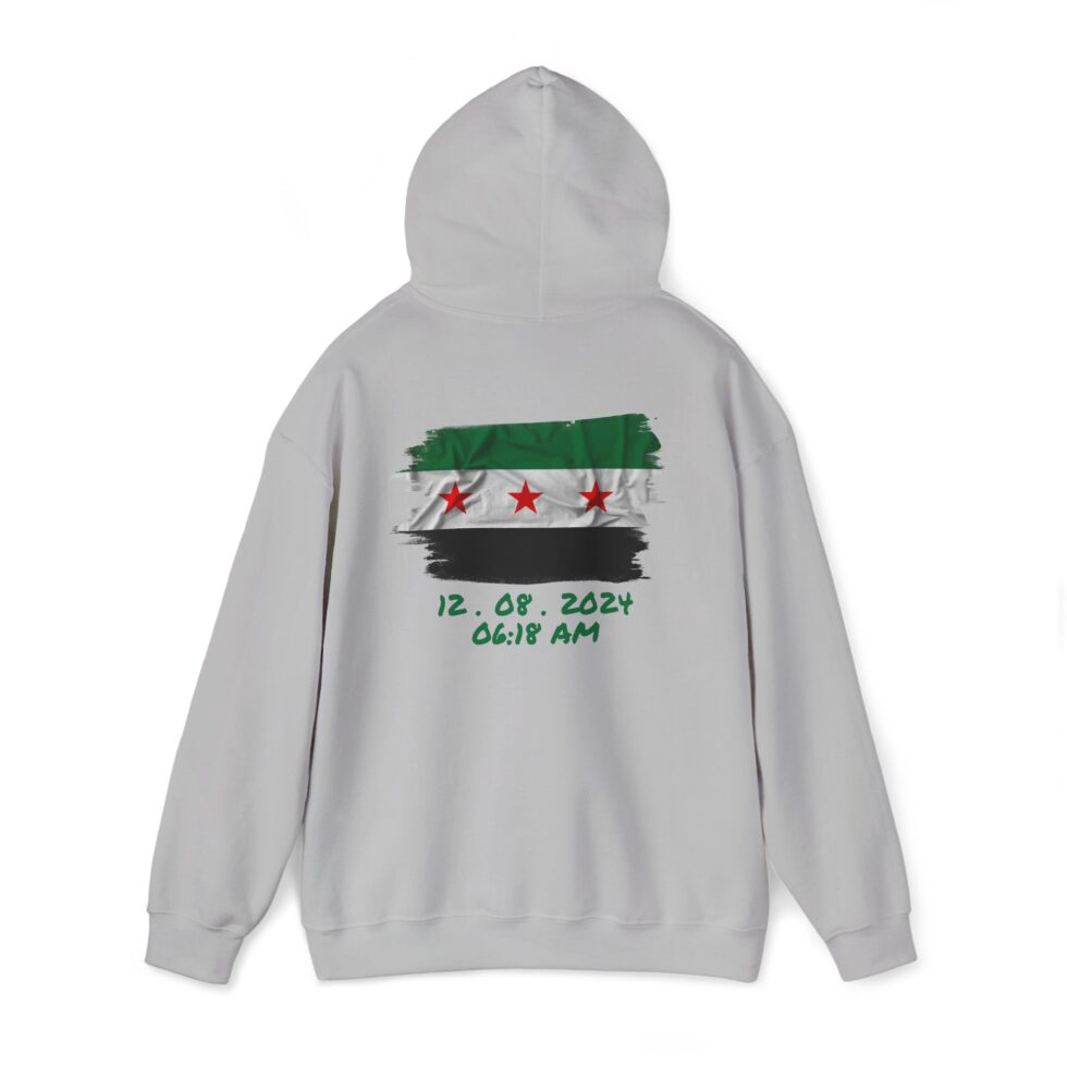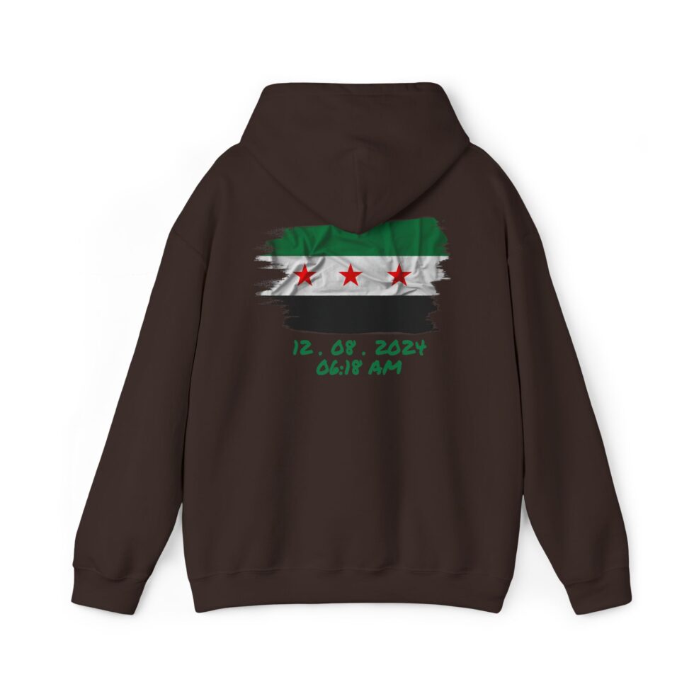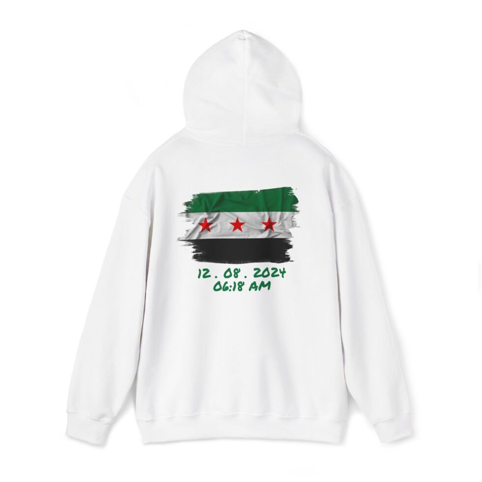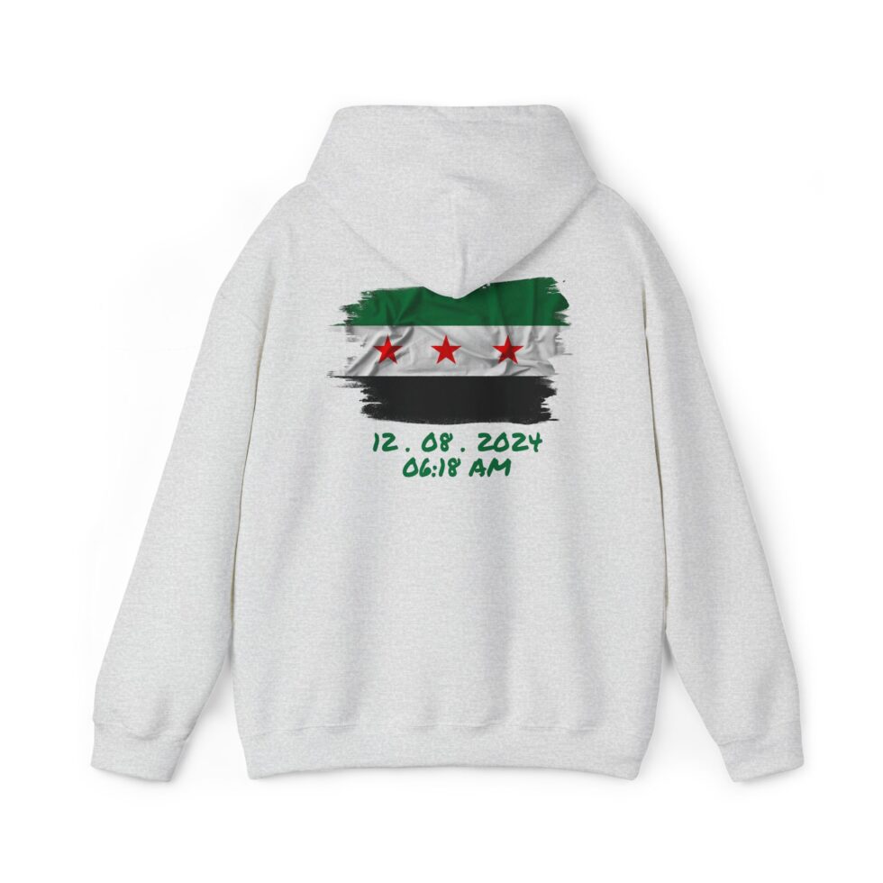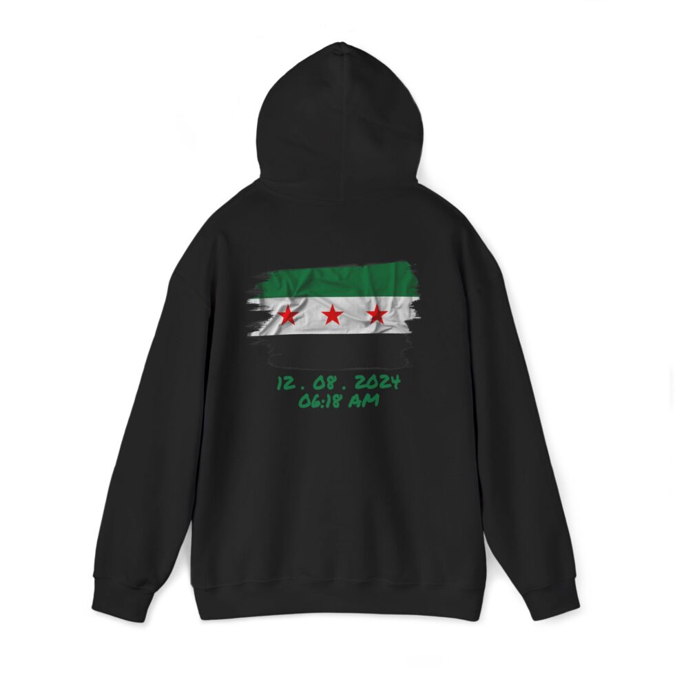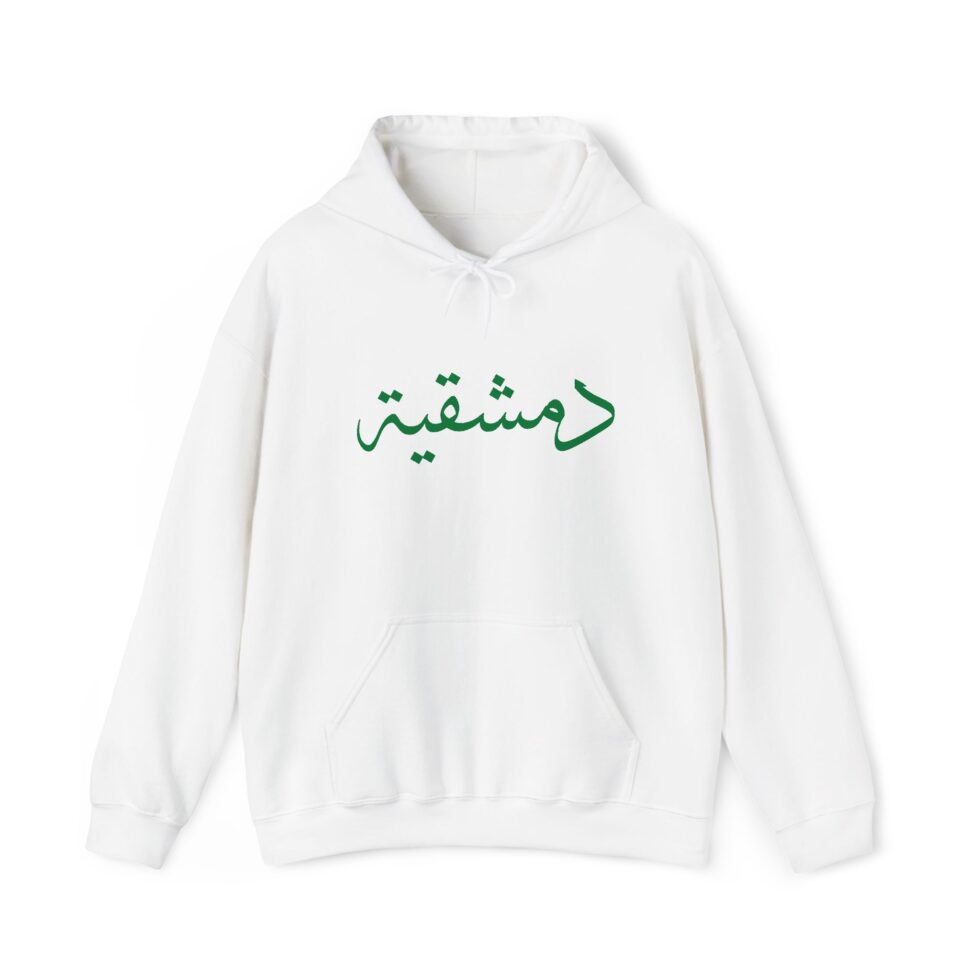 A damascene-themed hoodie celebrating free Syria, featuring the free Syria flag and perfect for independence day and time. This cozy and warm hoodie is a great way to show support and raise awareness for the cause. Suitable for adults and ethically made with a medium-heavy fabric for maximum comfort and warmth.