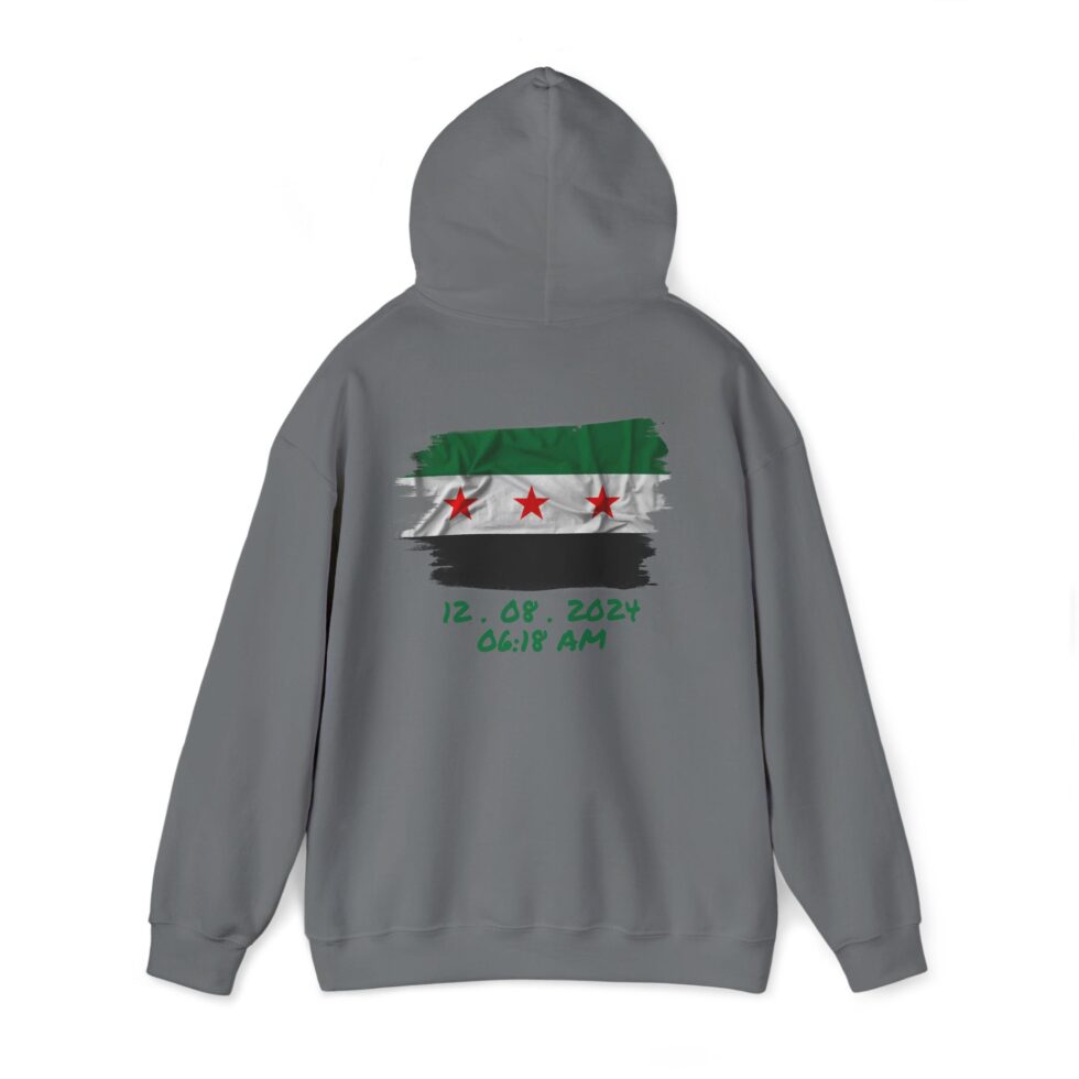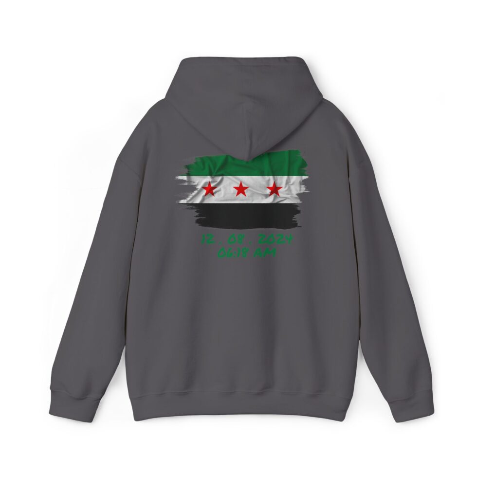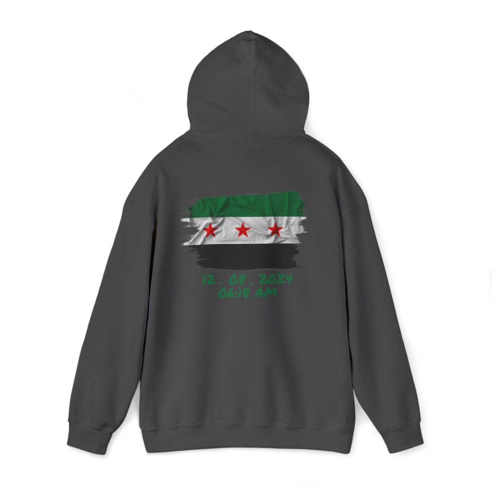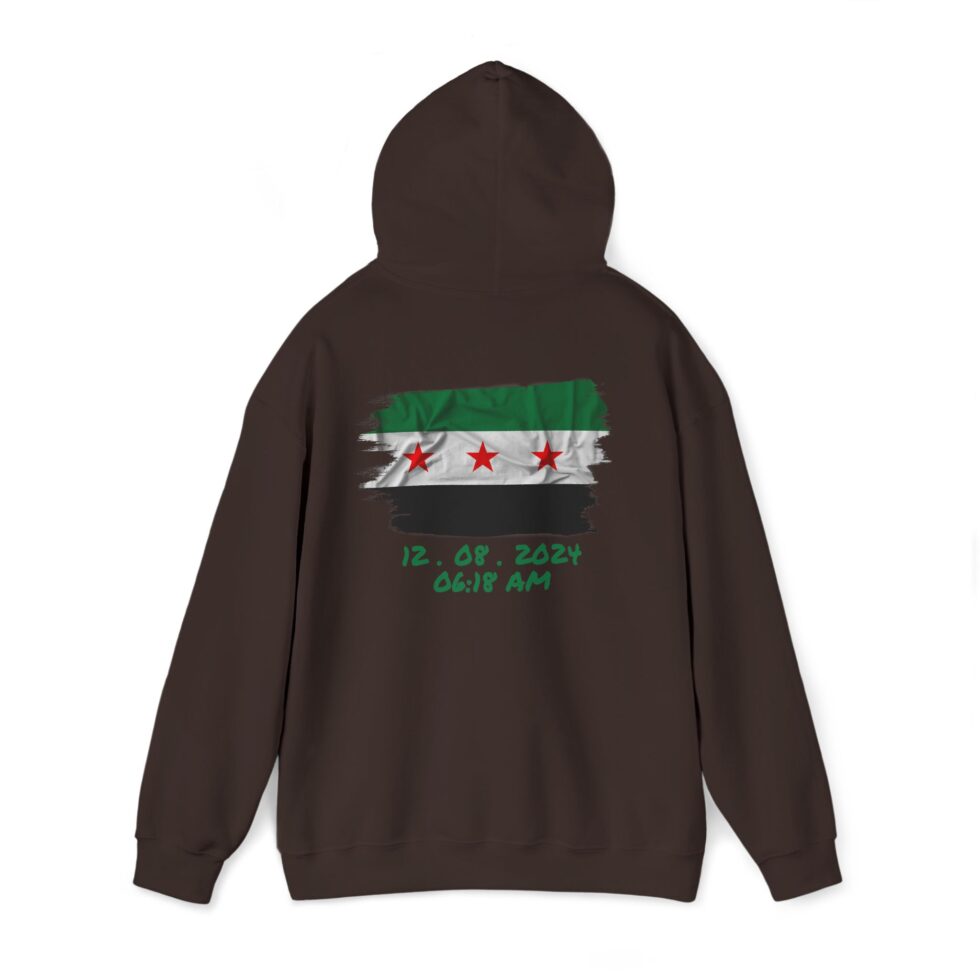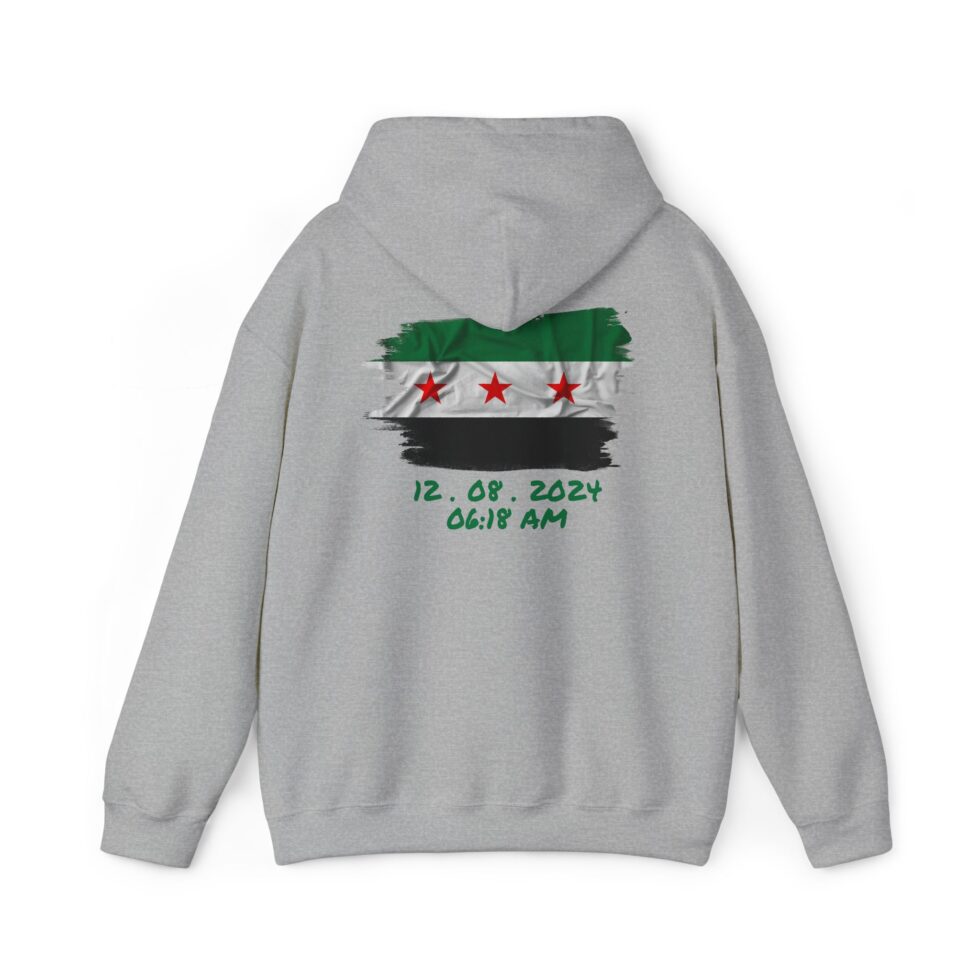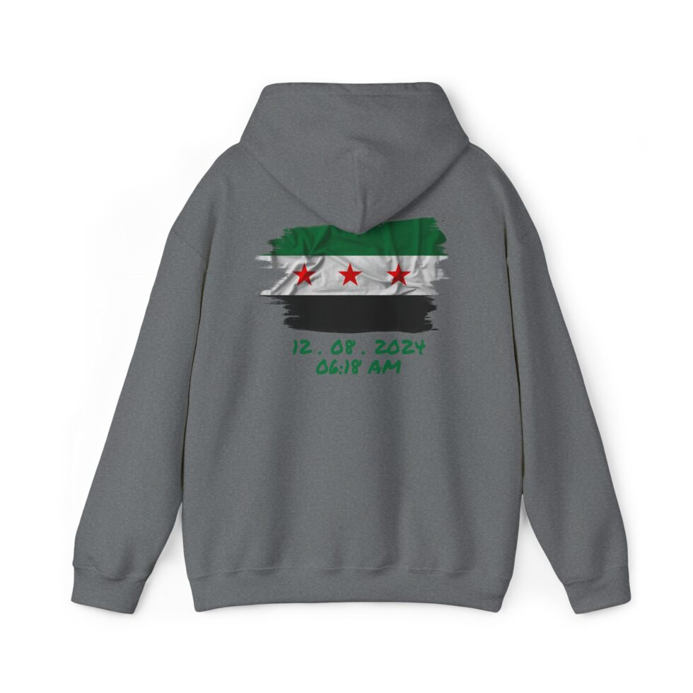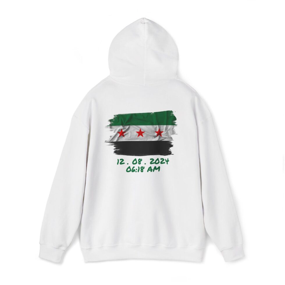 A damascene-themed hoodie celebrating free Syria, featuring the free Syria flag and perfect for independence day and time. This cozy and warm hoodie is a great way to show support and raise awareness for the cause. Suitable for adults and ethically made with a medium-heavy fabric for maximum comfort and warmth.