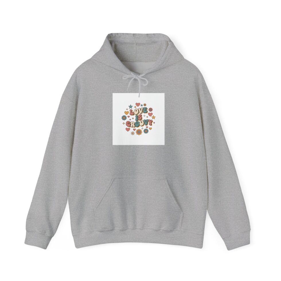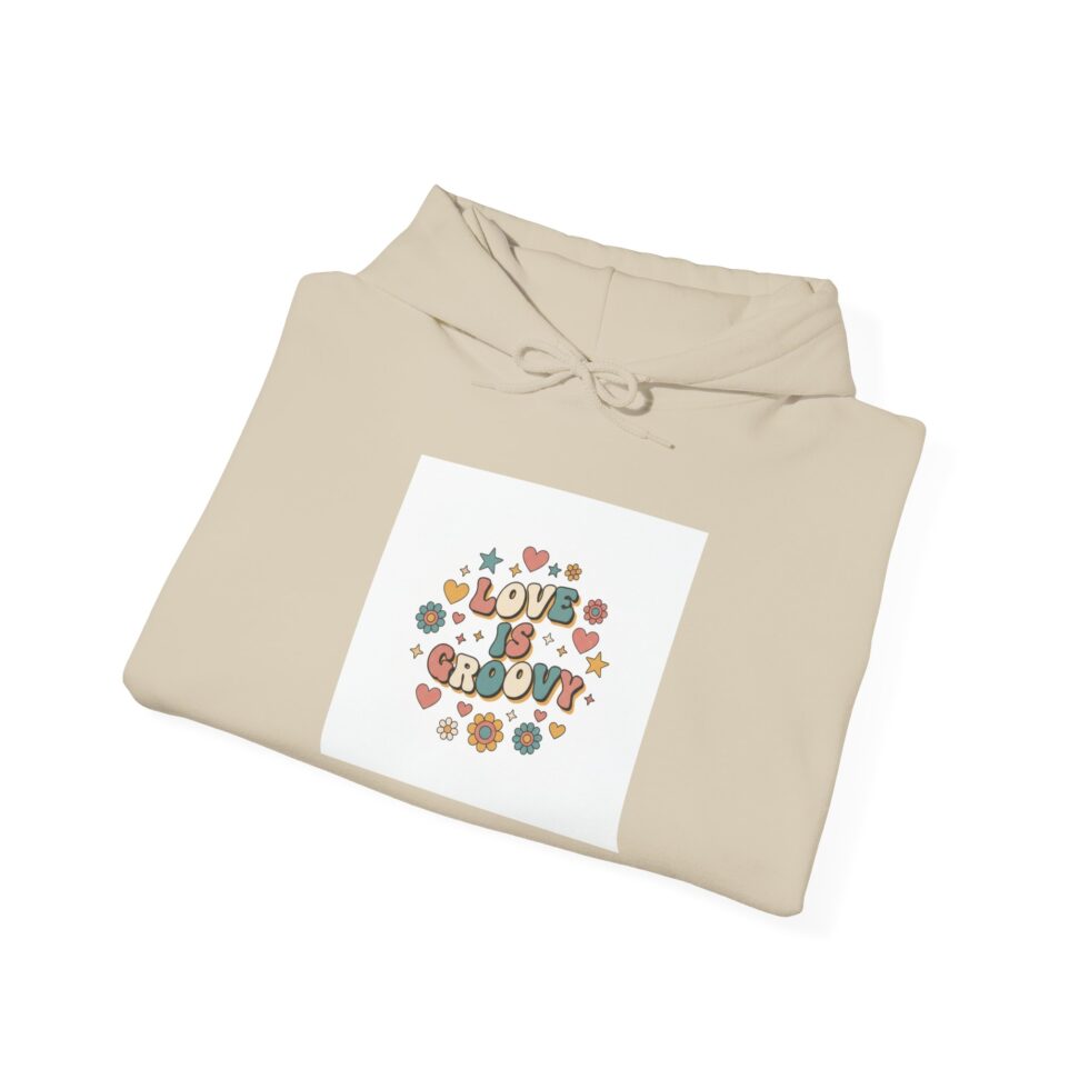Cozy retro-valentine hoodie with a compact, groovy typography cluster in dusty rose, mustard, teal and cream. The design pairs rounded 70s-style letterforms and heart motifs into a warm, nostalgic badge that reads clearly at thumbnail size—made to layer into vintage-inspired wardrobes and seasonal romance aesthetics. Comfortable, mid-weight fabric and a color-matched double-lined hood keep the throwback vibe wearable year-round for anyone who likes playful, nostalgic romance graphics.