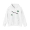 A soft, cozy hoodie that carries a quiet, nature-inspired story — gentle trees and drifting umbrellas printed across a clean white canvas. Lightweight warmth from a cotton-poly blend wraps around you while simple illustrations and poetic text (“The Snow” on front, “The Rain” on back) give this hoodie a contemplative, seasonal feel. Wear it on chilly walks through pine-lined streets, at low-key cabin gatherings, or when you want something calm and expressive to layer over jeans and boots.
